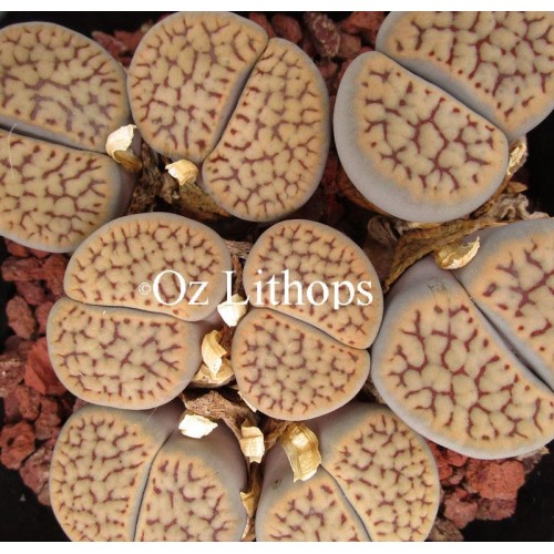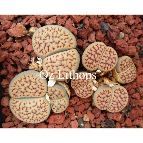 Lithops schwantesii ssp. schwantesii v. urikosensis (syn. nutupsdriftensis) C075. Wide red lines. Type Location - 35 km W of Maltahöhe, Namibia.