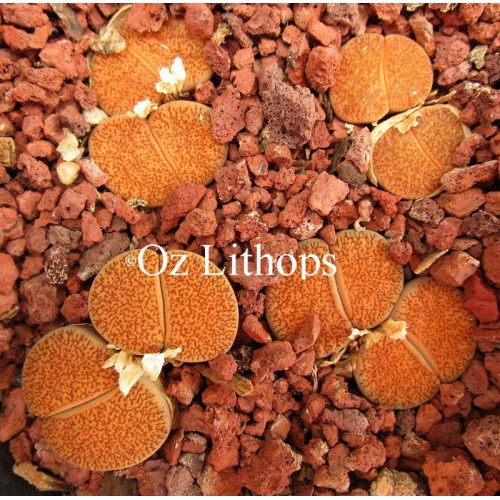 Lithops lesliei ssp. lesliei v. mariae C152. Fine speckles and lines. Location - 30 km North North East of Kimberley, South Africa.