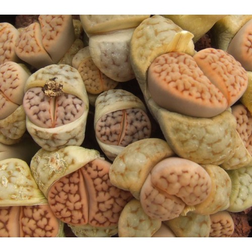 Lithops karasmontana ssp/v. karasmontana (syn. mickbergensis) C168. Rusty orange top. Location - North North East of Grunau, Namibia.