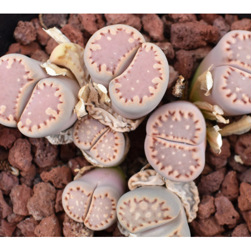 Lithops julii ssp/v. fulleri C171. Pink brown with red lines. Location - 60 km West of Upington, South Africa.