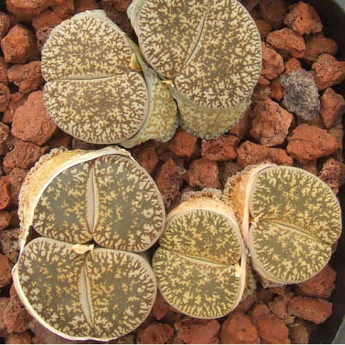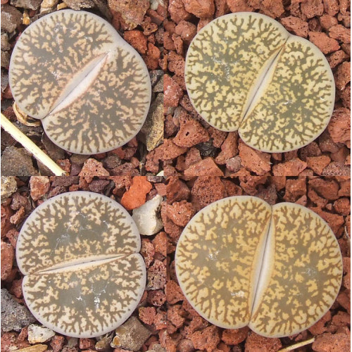 Lithops lesliei ssp/v. lesliei (Kimberley Form) C341. Pale form. Location - 20 km North West of Kimberley, South Africa.
