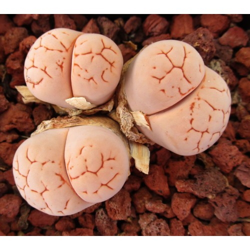 Lithops ruschiorum v. lineata C380. Milky, wavy tan lines. Slow and can be difficult. Location - 50 km East North East of Rocky Point, Namibia.