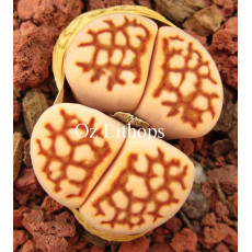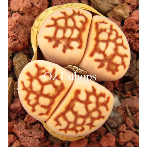 Lithops julii ssp. julii 'Red Reticulata'. Network of red reticulations.