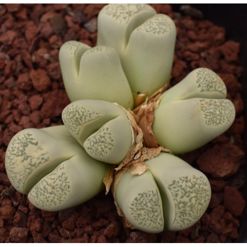Lithops herrei SB801. Crowded mossy patterns, lovely. Type Location - Sendlingsdrift, South Africa.