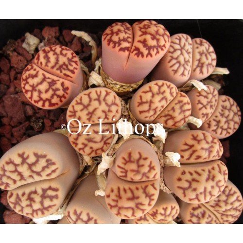 Lithops bromfieldii v. mennellii C044. Brainy texture, nice. Location - 25 km SSW of Upington, South Africa.