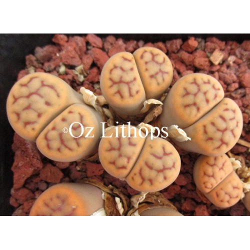 Lithops schwantesii ssp/v schwantesii C079. Orange/grey. Location - 25 km South West of Helmeringhausen, Namibia.