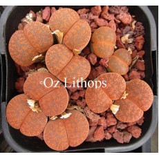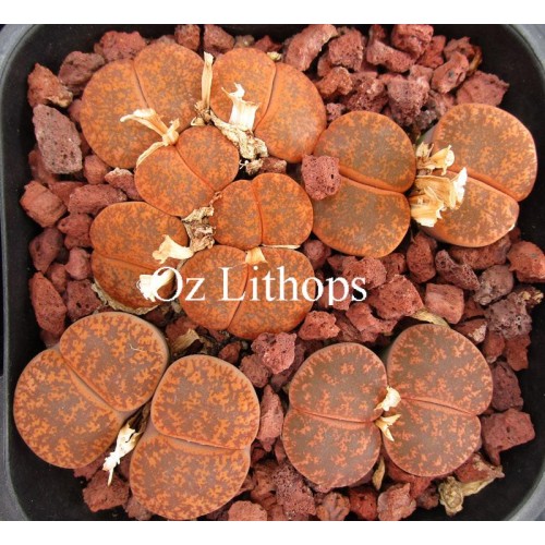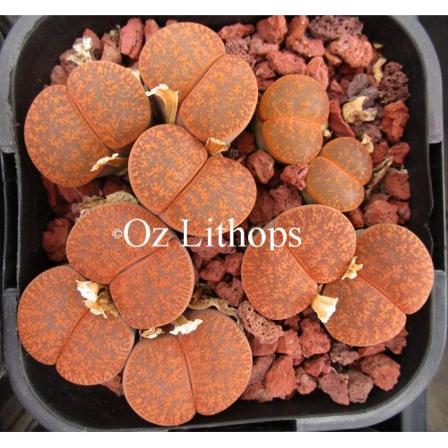 Lithops lesliei ssp/v. lesliei (Warrenton form) C096. Light brown, red pattern. Location - 25 km North of Kimberley, South Africa.