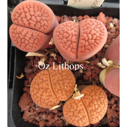 Lithops hookeri v. hookeri C112. Rust red, darker lines. Location: 15 km West North West of Prieska, South Africa.