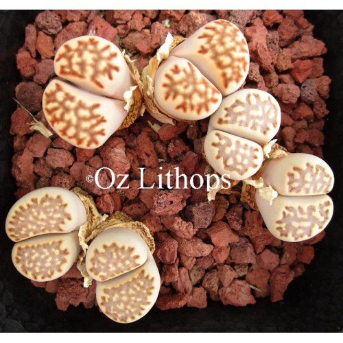 Lithops julii ssp. fulleri v. brunnea C179. Grey brown windows. Location - 10 km North East of Pofadder, South Africa.