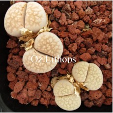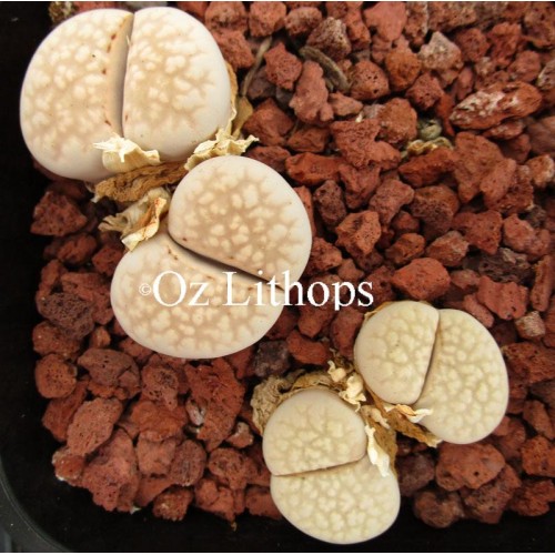 Lithops julii ssp. julii (syn. chrysophala) C205. Pale, milky grey body. Location - 50 Km South East of Warmbad, South Africa.