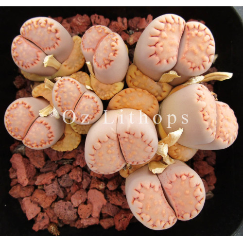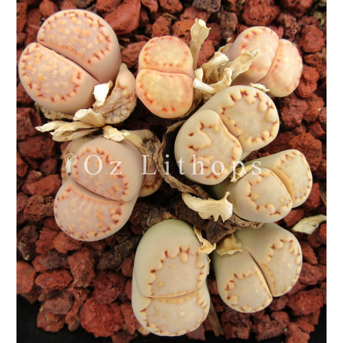 Lithops julii ssp. fulleri v. rouxii C217. Soft grey window. Location - 70 km West South West of Warmbad, Namibia.