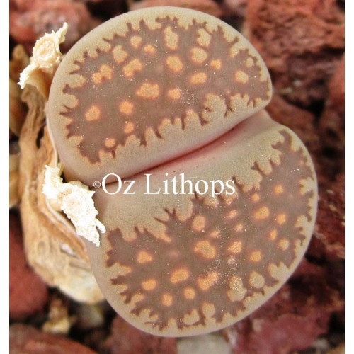 Lithops villetii ssp. deboeri C230A. Light face, grey when young, pink later.Location - 75 km East of Gamoep, South Africa.