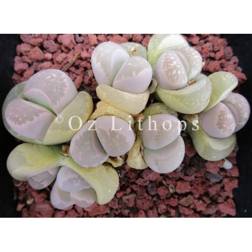 Lithops optica (maculate form) C293. Grey tinged pink. Location - 95 km South South East of Luderitz, Namibia.