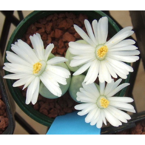 Lithops julii ssp. julii 'Peppermint Creme' C297A. (Also spelt 'cream') Unusual green form julii. Location - 45 km South East of Warmbad, Namibia.