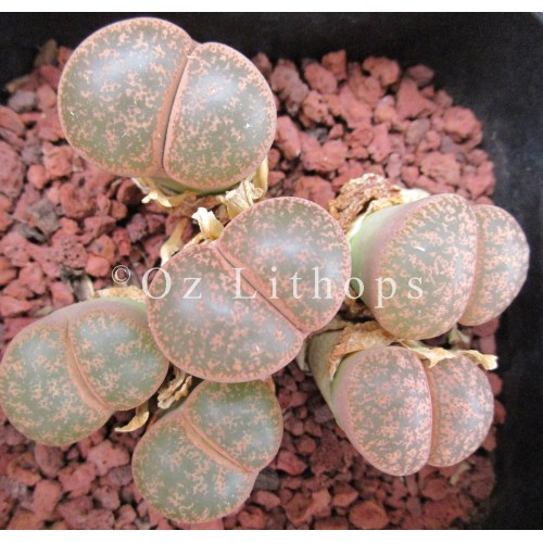 Lithops lesliei ssp/v. lesliei C342. Chinese red. Location - 10 km North East of Pretoria, South Africa.