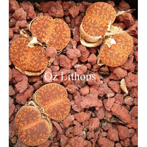 Lithops lesliei ssp. lesliei v. hornii C364. Rusty brown. Type Location - 45 km South South West of Kimberley, South Africa.