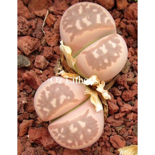 Lithops marmorata v. marmorata (syn. framesii) C365. Odd colours, including some pink/orange. Location - 60 km North East of Springbok, South Africa.