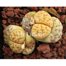 Lithops karasmontana ssp. eberlanzii 'Avocado Cream' C402. The "other" 'Avocado Cream' karasmontana although we don't think this is nearly as nice as C370A. Type Location - 40 km East of Lüderitz, Namibia.