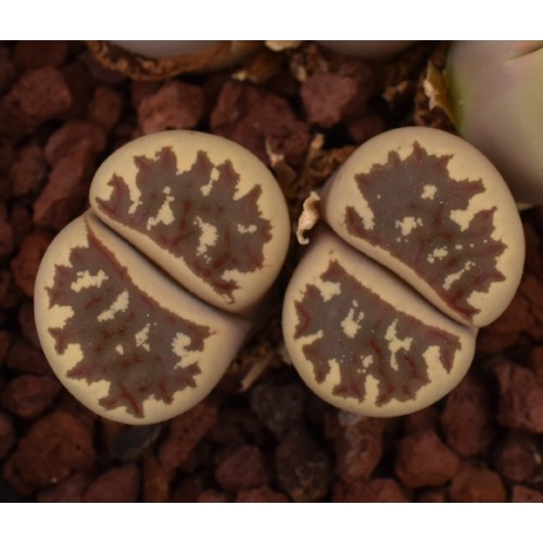 Lithops dorotheae F357. Large, open, red-orange windows. (ex Ernst Fritz's collection)