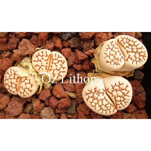 Lithops julii ssp. julii 'Red Reticulata'. Network of red reticulations.