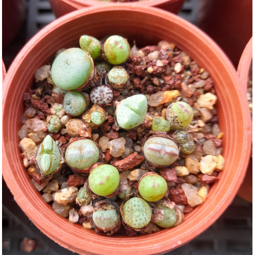 Pots of mixed Conophytum seedlings. Minimum of 10 seedlings per pot. Price is per pot. Plants will be sent bare root. PLEASE NOTE: Pots will be chosen at random.