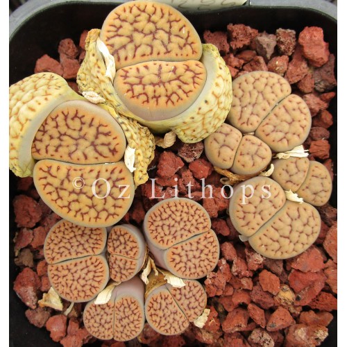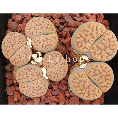 Lithops schwantesii ssp. schwantesii v. urikosensis (syn. nutupsdriftensis) C075. Wide red lines. Type Location - 35 km W of Maltahöhe, Namibia.