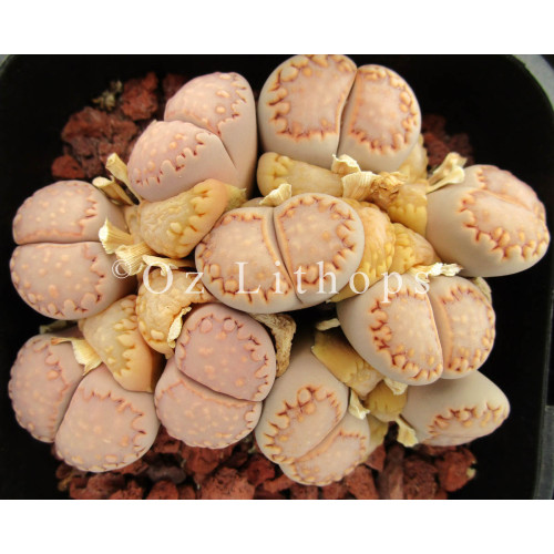 Lithops julii ssp. fulleri v. rouxii C217. Soft grey window. Location - 70 km West South West of Warmbad, Namibia.