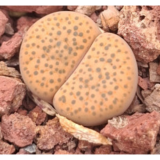 Lithops fulviceps v. fulviceps C220. Ochre bodies, many dots. Location: 75 km North of Karasburg, Namibia.