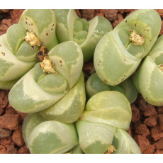 Lithops optica C286. Many tinged pink. Location - 10 km South West of Lüderitz, Namibia.