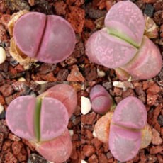 Lithops optica cv. 'Rubra' C287. One of the famous 'red' Lithops. Location - 10 km South West of Lüderitz, Namibia.