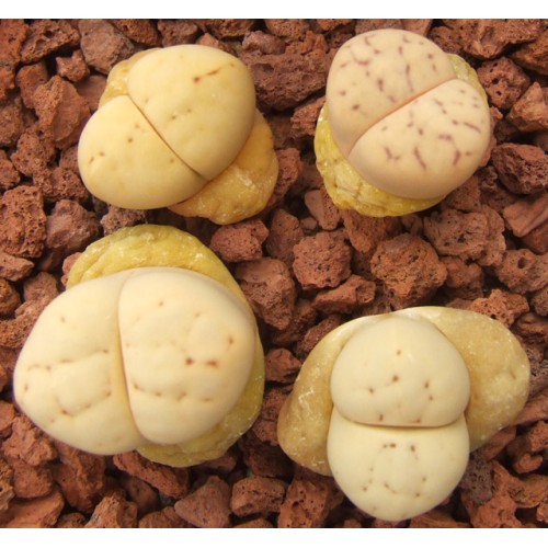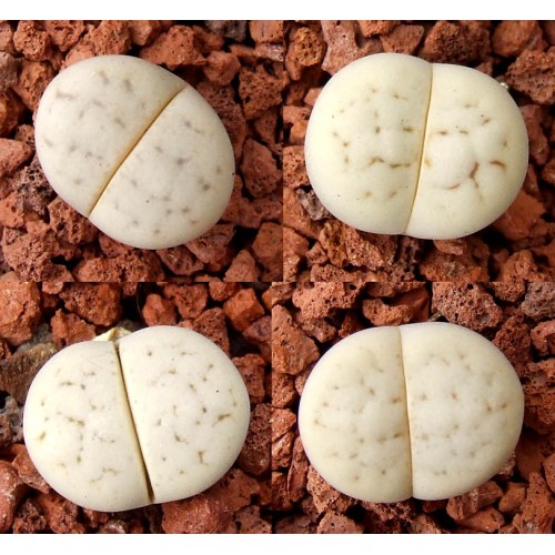 Lithops ruschiorum v. ruschiorum C387. Shiny cream/white stones. Location - 8 km North of Rössing, Namibia.