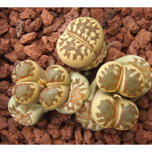 Lithops dorotheae F357. Large, open, red-orange windows. (ex Ernst Fritz's collection)