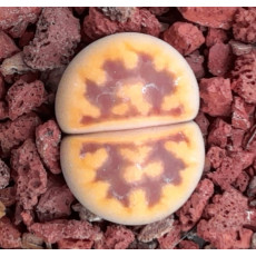 Lithops 'Lava Flow'. Lithops karasmontana subsp. karasmontana var. tischeri X Lithops karasmontana subsp. karasmontana var. lericheana. Strong rubrications in this karasmontana hybrid.