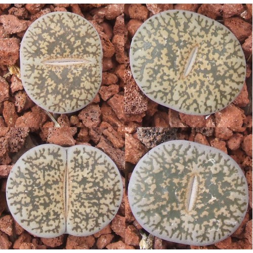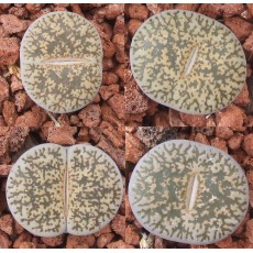 Lithops lesliei ssp. lesliei v. minor C006. Dark window, rust body, small. Location - South West of Swartruggens, South Africa.