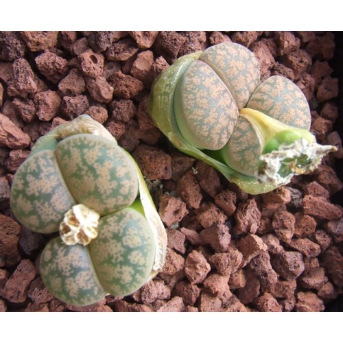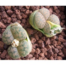 Lithops lesliei ssp. lesliei v. minor 'Witblom' C006A. Cultivar with white blooms. Location - South West of Swartruggens, South Africa.
