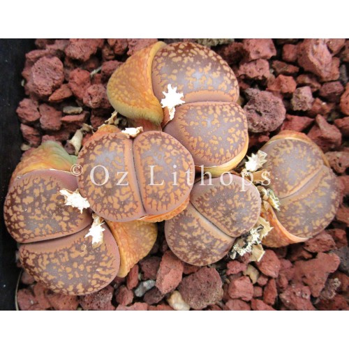 Lithops aucampiae ssp/v. aucampiae (Kuruman form) C011. Wide dark brown windows. Location - 5 km South West of Kuruman, South Africa.