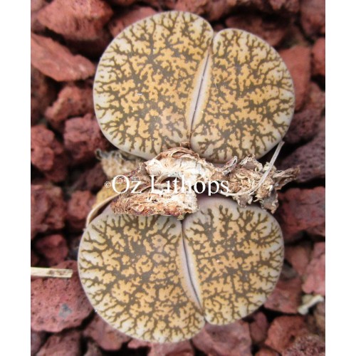 Lithops lesliei ssp/v. lesliei C014 (Kimberley form). Type Location: 40 km South West of Kimberley, South Africa.