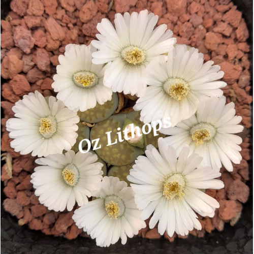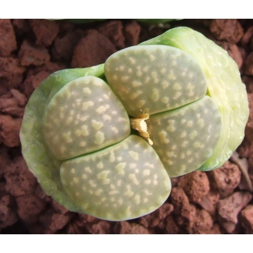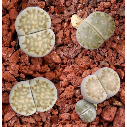 Lithops julii ssp/v. fulleri 'Fullergreen' C056A. Darker green zig zags on green face. Location - 25 km South West of Pofadder, South Africa.