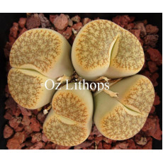 Lithops pseudotruncatella ssp/v. pseudotruncatella (syn. mundtii) C099. Tan, mossy patterns. Location - 150 km North East of Windhoek, Namibia.