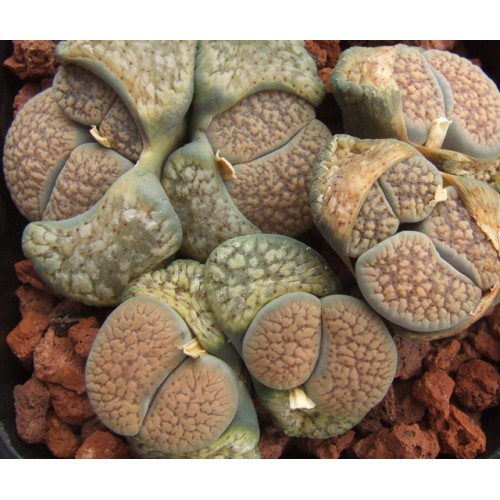 Lithops verruculosa v. verruculosa C120. Lovely flowers, pale yellow to burnt orange. Location - 30 km North of Vanwyksvlei, South Africa.