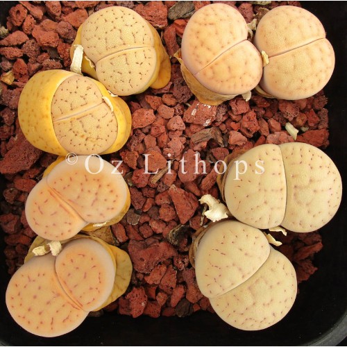 Lithops vallis-mariae (syn. margarethae) C167. Top milky, deep lines. Type Location - Near Berseba, Namibia.