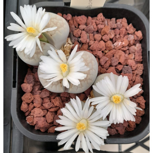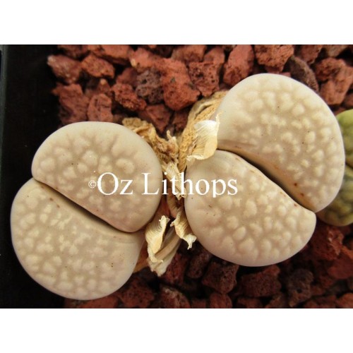 Lithops julii ssp. julii (syn. chrysophala) C205. Pale, milky grey body. Location - 50 Km South East of Warmbad, South Africa.