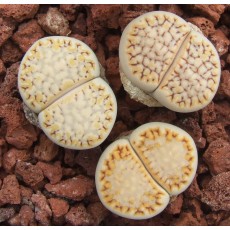 Lithops julii ssp. fulleri v. rouxii C215. Mustard border. Location - 75 km West South West of Warmbad, Namibia.