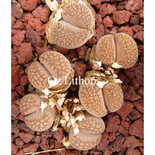 Lithops villetii ssp. deboeri C230A. Light face, grey when young, pink later.Location - 75 km East of Gamoep, South Africa.