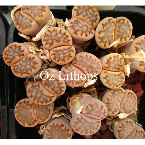 Lithops julii ssp/v. fulleri C323. Chicken feet pattern. Location - 25 km South West of Upington, South Africa.