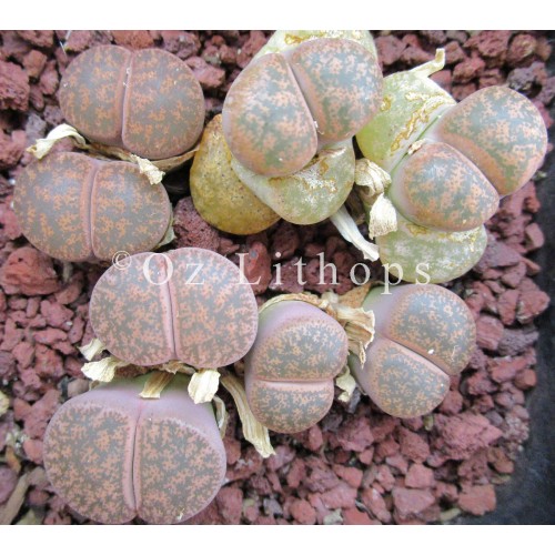 Lithops lesliei ssp/v. lesliei C342. Chinese red. Location - 10 km North East of Pretoria, South Africa.