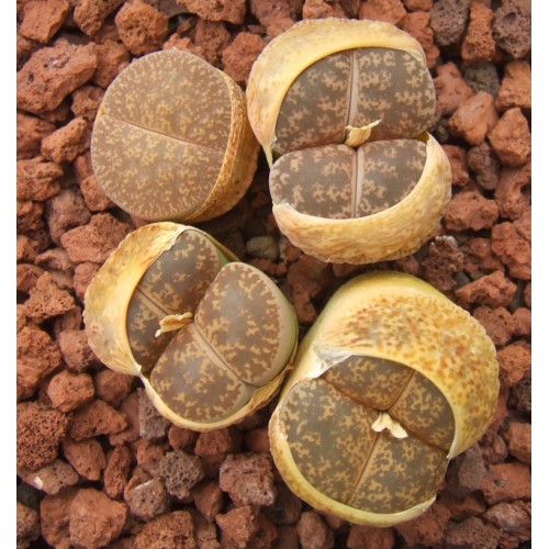 Lithops lesliei ssp/v. lesliei (grey form) C359. Grey brown surface. Location - South West of Lobatse, Botswana.