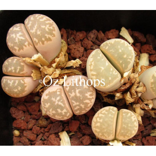Lithops marmorata v. marmorata C360. Grey/green, upright. Location - 35 km North East of Steinkopf, South Africa.