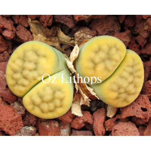 Lithops schwantesii ssp. schwantesii v. rugosa 'Shagreen'. Green bodied rugosa cultivar.(NOW 20 seeds per packet)