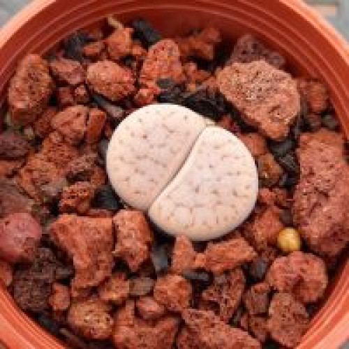 Lithops pseudotruncatella ssp. dendritica TOK006A. Location: Near Klein Aub, Namibia (same location as C357). Seed parents selected for strong markings.
